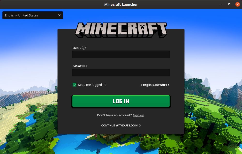 To launch Minecraft on Ubuntu and its derivatives, simply search for the Minecraft Launcher and run it. If everything goes right, the Minecraft Launcher should start right away, prompting you to enter your email address and password.