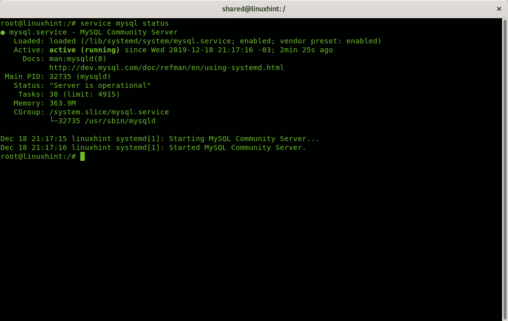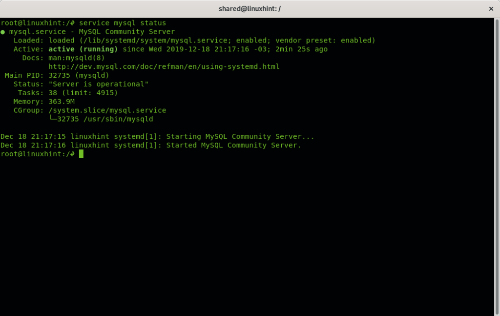 Dec 18 20:54:54 linuxhint systemd[1]: Starting MySQL Community Server...