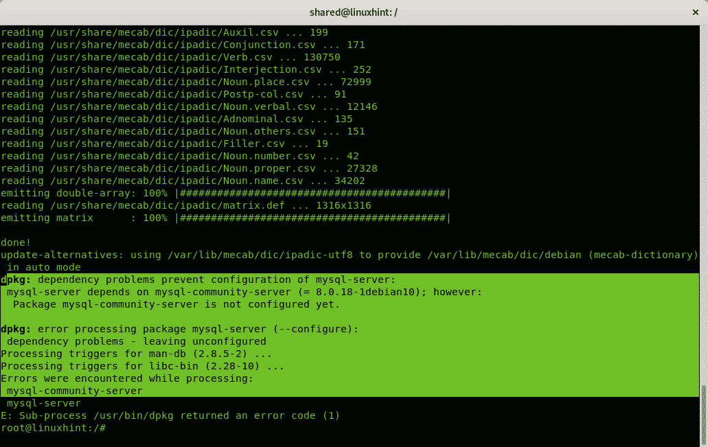Dec 18 20:54:55 linuxhint systemd[1]: mysql.service: Failed with result 'exit-code'.