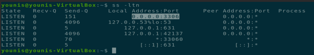 You can check the MySQL post usage and IP address by using the listening command.