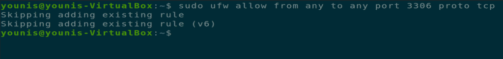 You should make sure that the firewall doesn’t stop incoming connections from SQL port that port 3306. For this purpose, you should give the following command in the terminal window.
