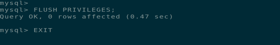 Save all these changes and exit the MySQL shell terminal window.