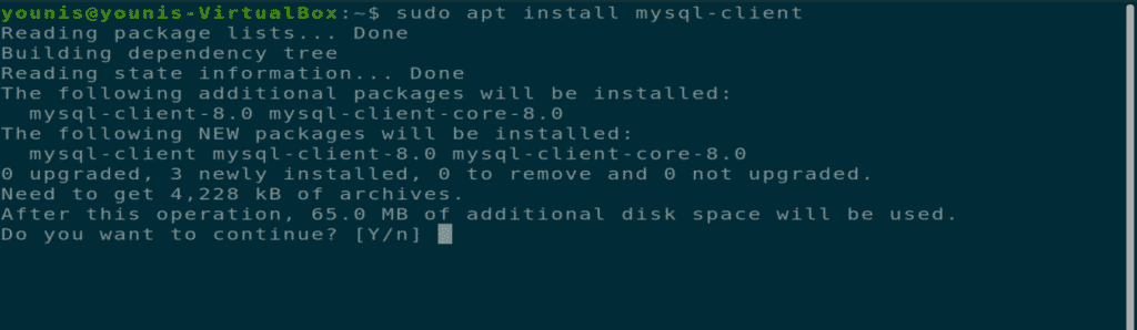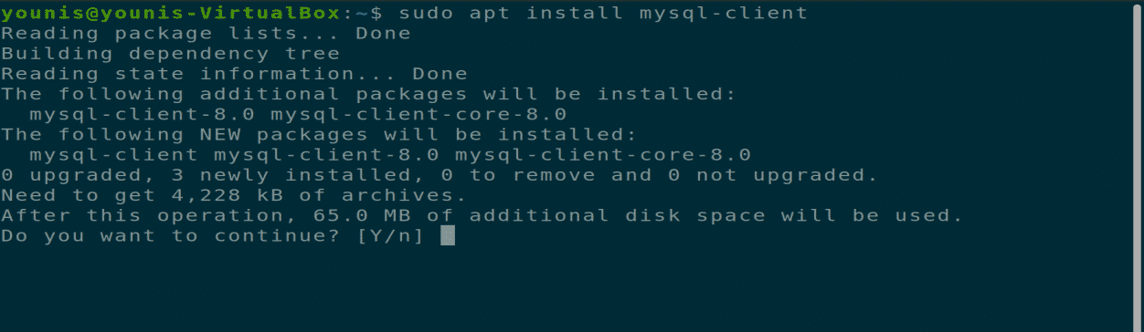 Now download and install MySQL client with the following terminal command.