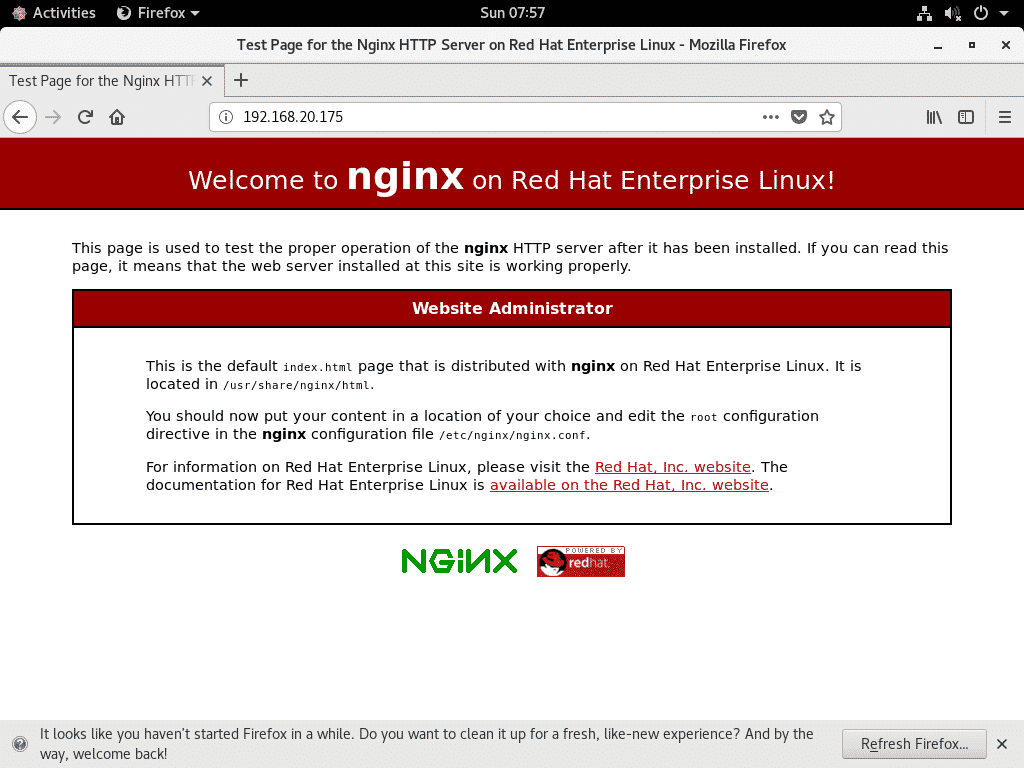 Now, visit http://192.168.20.175 from your web browser. You should see the following page. It means Nginx web server is working.