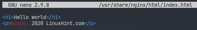 Now, create a new index.html file in the /usr/share/nginx/html/ directory as follows: