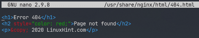 Now, create a file 404.html in the Nginx web root /usr/share/nginx/html/ as follows: