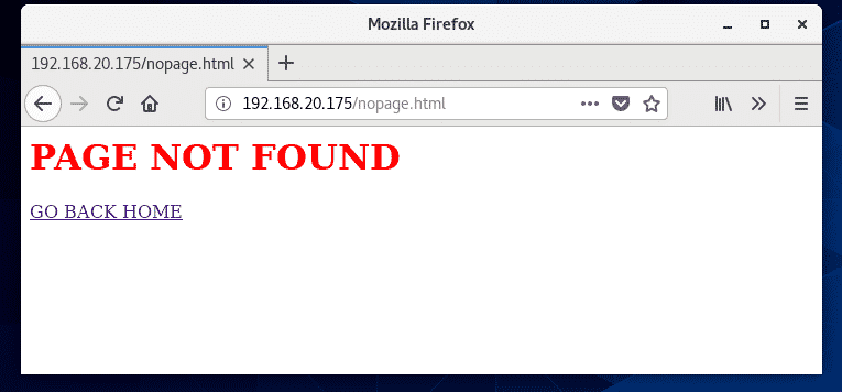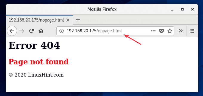 Now, try to access a non-existent path (http://192.168.20.175/nopage.html) and you should see the following error page.