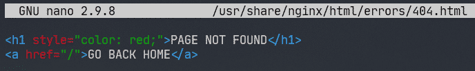 Now, create a new file 404.html in the directory /usr/share/nginx/html/errors/ as follows:
