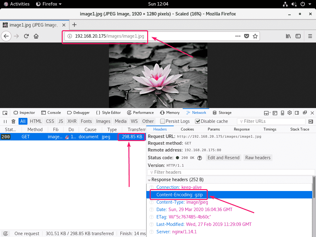 As you can see, Nginx sends gzip compressed image files to the browser when requested.