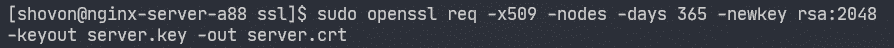 Now, generate an SSL key server.key and certificate server.crt with the following command: