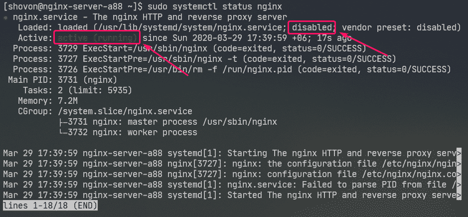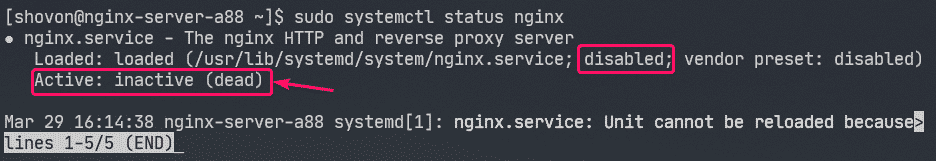 By default, nginx service should be inactive (not running) and disabled (won’t automatically start on boot).