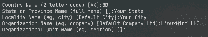 Now, type in the organizational unit name of your company which will use this certificate and press <Enter>.