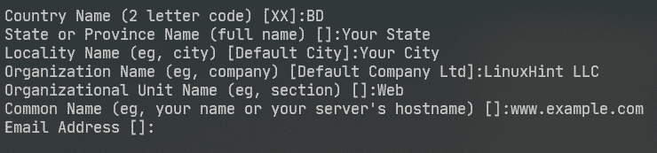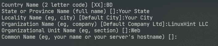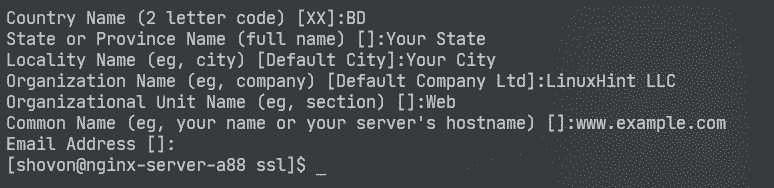 Now, type in the fully qualified domain name (FQDN) of your Nginx web server and press <Enter>. The SSL certificate will be valid only if the Nginx web server is accessed using this domain name.