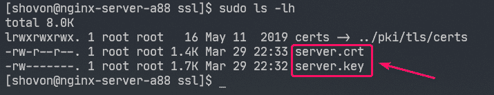 The SSL certificate and key should be generated in the /etc/ssl/ directory.