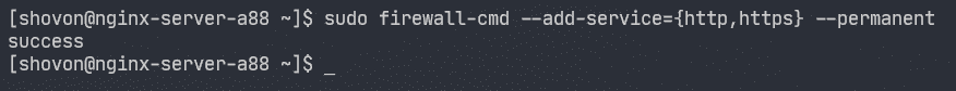 You must configure the firewall to allow access to the HTTP port 80 and HTTPS port 443 in order to access the Nginx web server from other computers on the network.