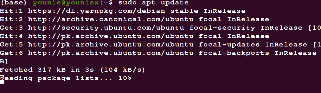 Installing Node.js with an apt package manager from Ubuntu’s official repository is fairly straightforward. First, update your package listing before running the installation command by entering the following: