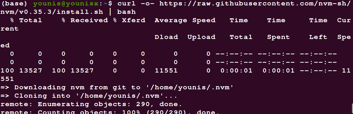 Paste it on the command terminal and run it to install the nvm. Then, run the following command to source your bash file.