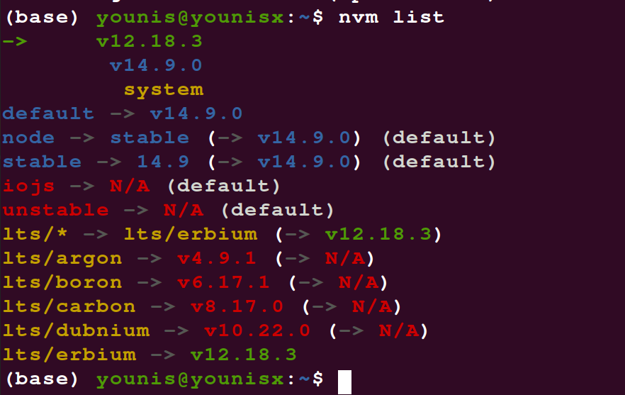 You have now successfully downloaded and installed Node.js v14.9.0 onto your system. You can download multiple different versions with nvm without the versions interrupting each other. You can even download and install long-term support versions of Node with nvm, such as Erbium or Dubnium. For example, the following command installs the latest Erbium version: