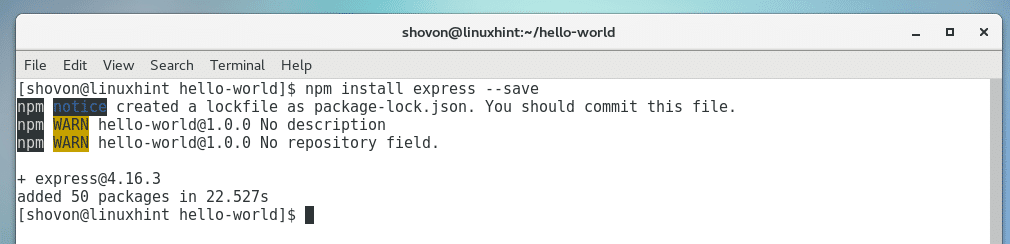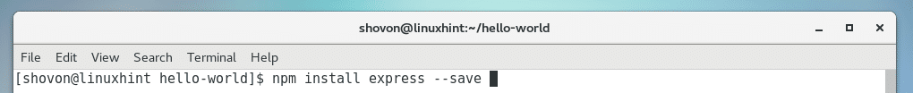 Now install Express.js NodeJS package with NPM with the following command: