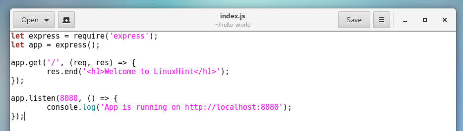 res.end('<h1>Welcome to LinuxHint</h1>');
