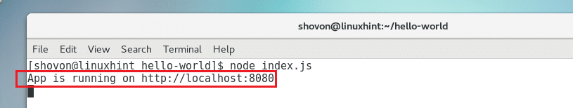 Now from your web browser, go to http://localhost:8080 and you should see the following output. The NodeJS app is working correctly.