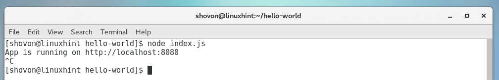 Now to stop the app, press <Ctrl> + c on the terminal.