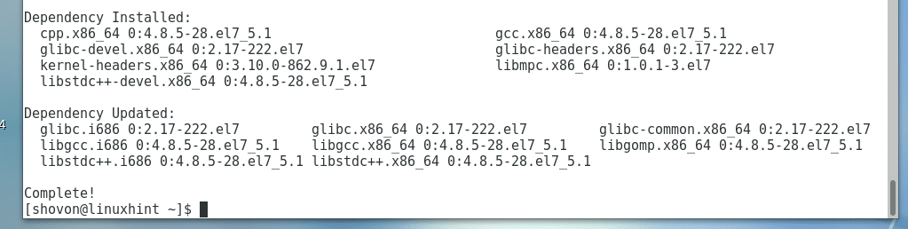 Now install build tools on your CentOS 7 machine with the following command: