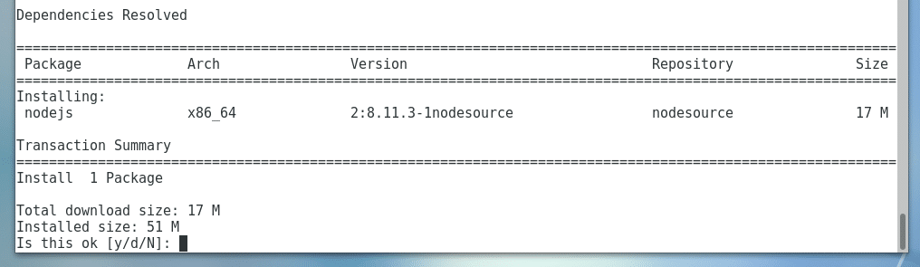 I went for the LTS release of NodeJS, which is version 8.x. As you can see, the package repository is added.