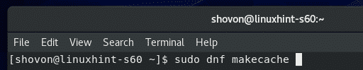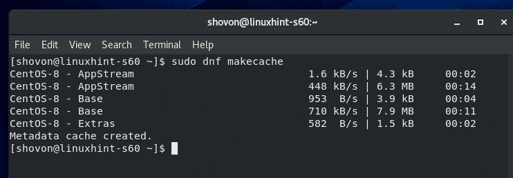 First, update the CentOS 8 package repository cache with the following command: