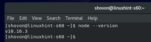 As you can see, Node.js v10.16.3 is installed.