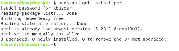Now you have to run the following command in your terminal to install Perl on your Debian 10 system: