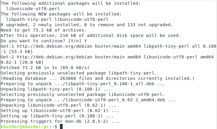 Once the installation of Perl completes successfully, the output shown in the image below will be displayed on your Debian 10 terminal: