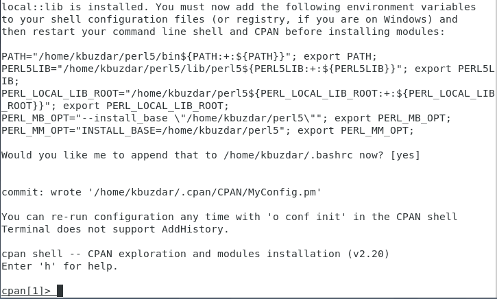 Once the CPAN repository has been successfully installed on your Debian 10 system, the terminal will produce the output shown in the image below: