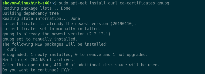 Now, install curl, ca-certificates and gnupg packages with the following command: