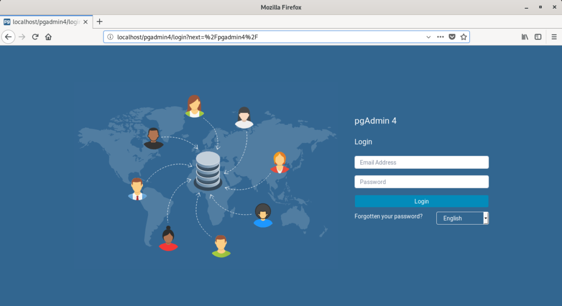 You can access pgAdmin 4 from any web browser. Just open a browser and visit http://localhost/pgadmin4 (for accessing locally) or http://<IP_ADDRESS>/pgadmin4 (for remote access)