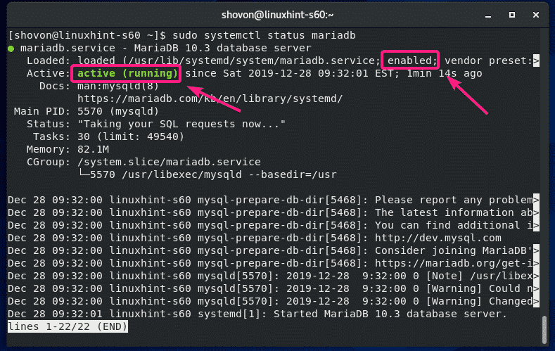 Now, type in the MySQL/MariaDB root password and press <Enter>. By default, no password is set. So, just press <Enter> if you haven’t set a MySQL/MariaDB password.