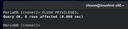 Finally, exit out of the MySQL/MariaDB shell as follows: