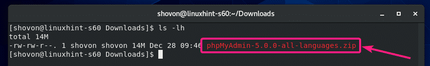 Once phpMyAdmin archive is downloaded, navigate to your ~/Downloads directory as follows:
