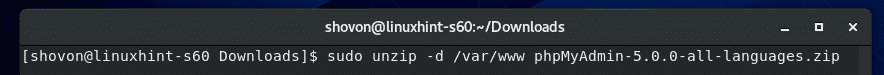 Now, extract the phpMyAdmin-5.0.0-all-languages.zip archive in the /var/www directory with the following command: