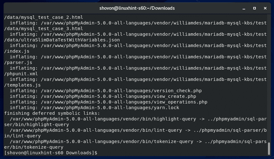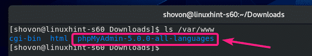 A new directory phpMyAdmin-5.0.0-all-languages/ should be created in the /var/www directory. Remember the directory name as you will need it later.