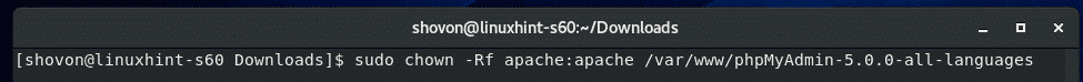 Now, change the user and group of the /var/www/phpMyAdmin-5.0.0-all-languages directory and its contents to apache as follows: