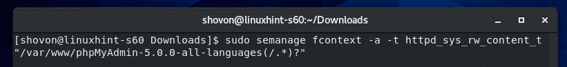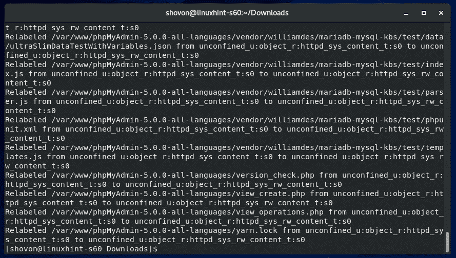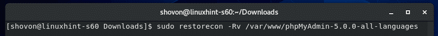 The SELinux context should be applied to the /var/www/phpMyAdmin-5.0.0-all-languages directory and its contents.