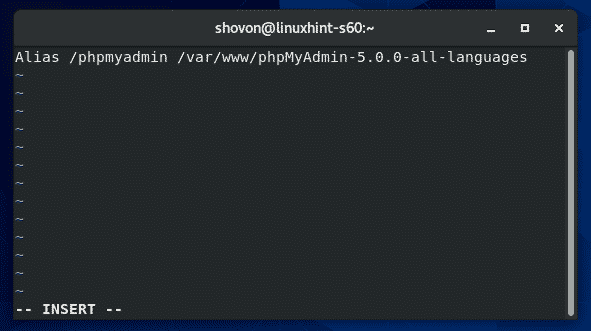 Now, add the following line to the file /etc/httpd/conf.d/phpmyadmin.conf