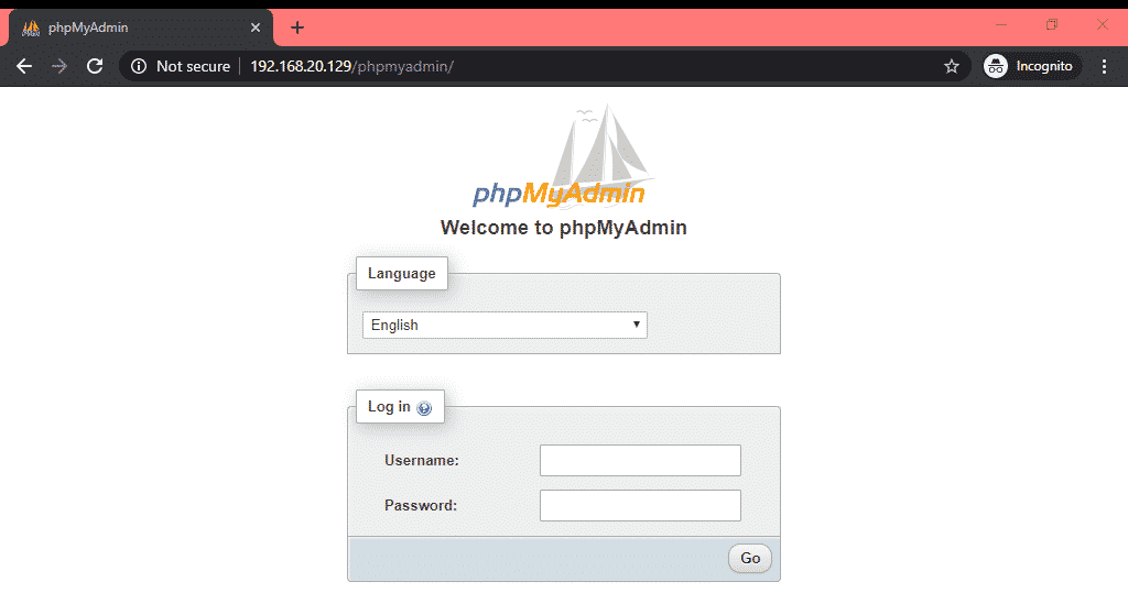 Now, from your remote computers, open a web browser and visit http://192.168.20.129/phpmyadmin/ to access phpMyAdmin.