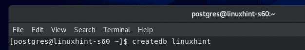 You can create a PostgreSQL database (let’s call it linuxhint) with the following command: