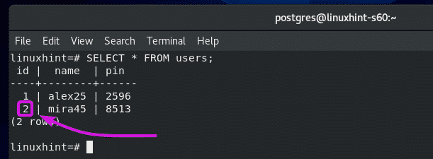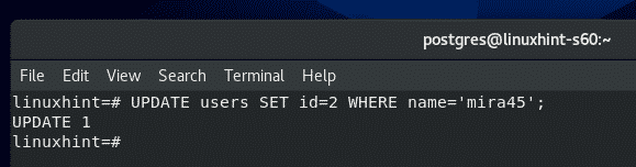 Let’s say, you want to update the id of ‘mira45’ of the users table from 1 to 2.