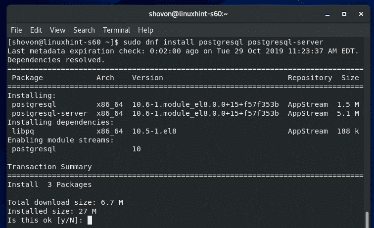 PostgreSQL is available in the official package repository of CentOS 8. So, you can easily install it using DNF or YUM package manager.