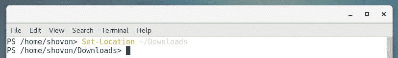 For example, to navigate to the ~/Downloads directory, run the Set-Location command as follows: