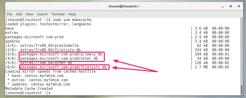 Now, update the YUM package repository cache with the following command: