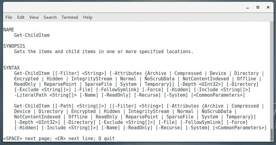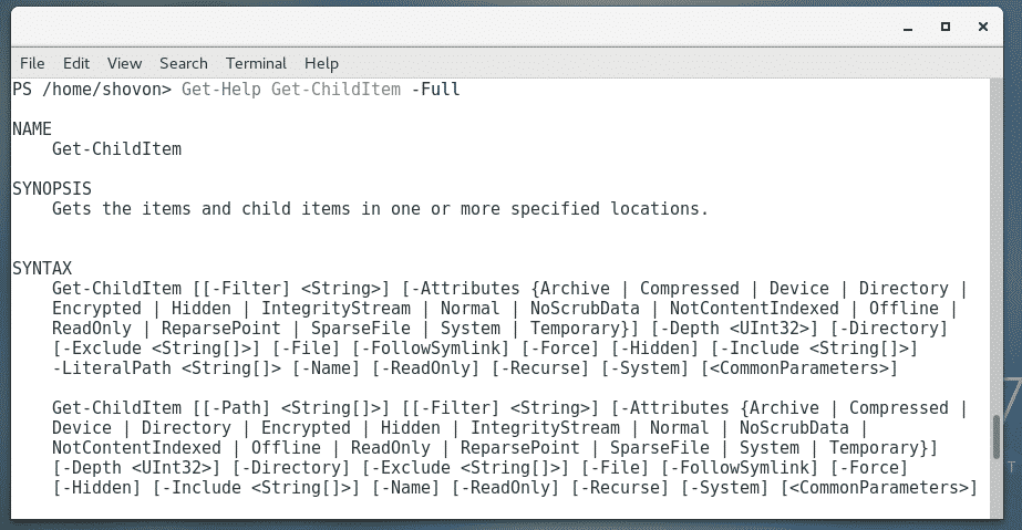 For example, to read the help page of Get-ChildItem, run Get-Help as follows: